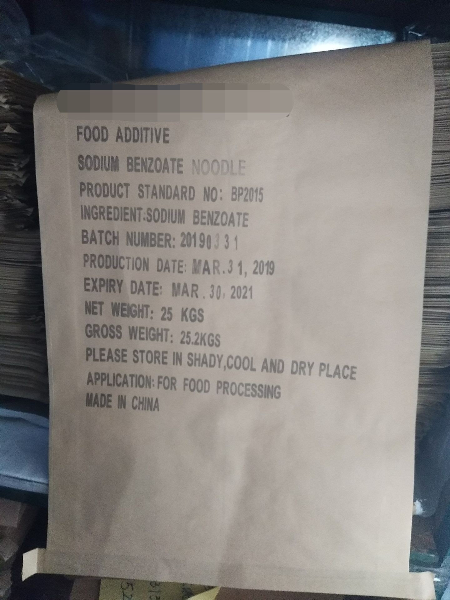 Packing of Sodium Benzoate